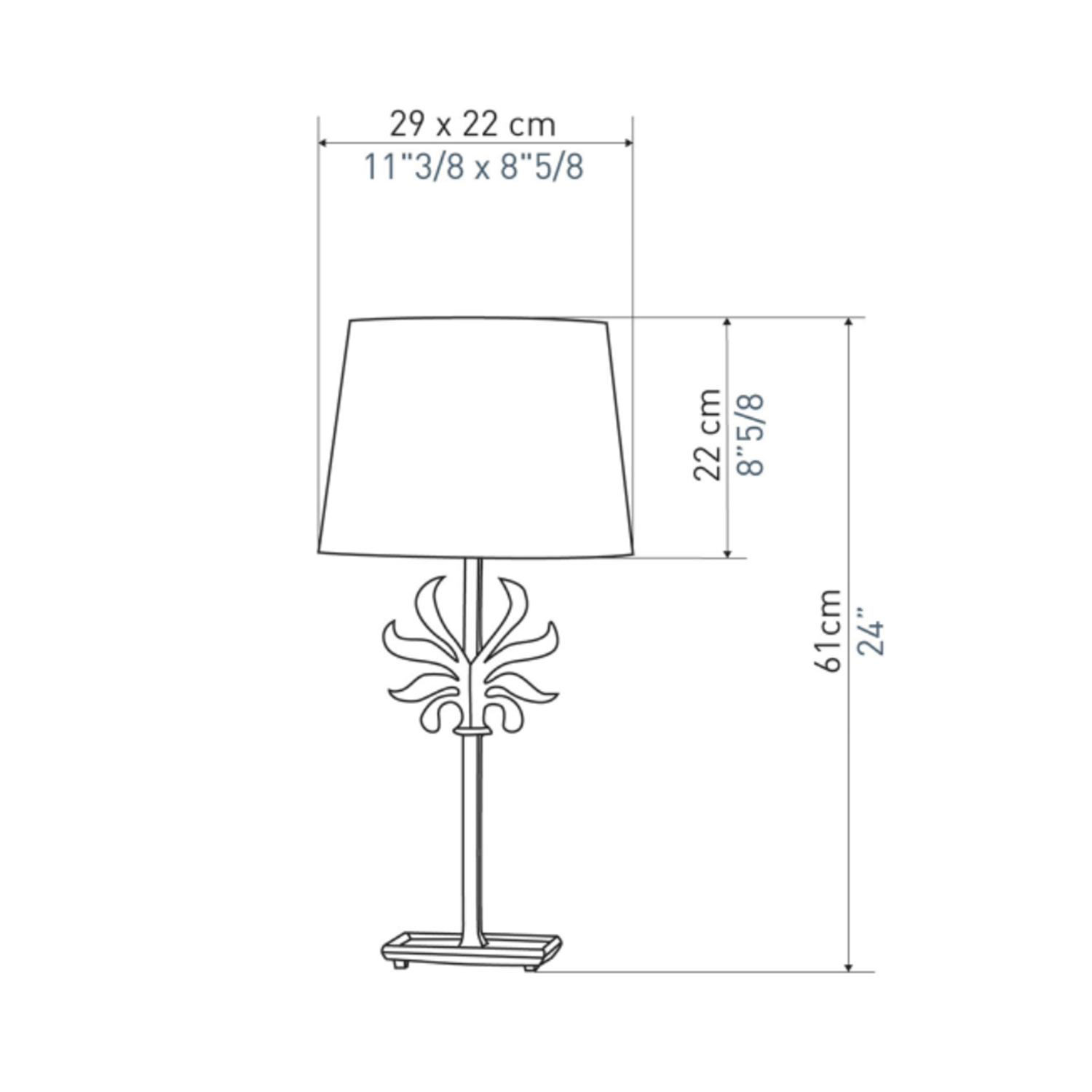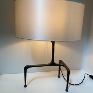 The PALOMA Table Lamp is a Bronze-cast table light in Gold finish, with a fabric shade.